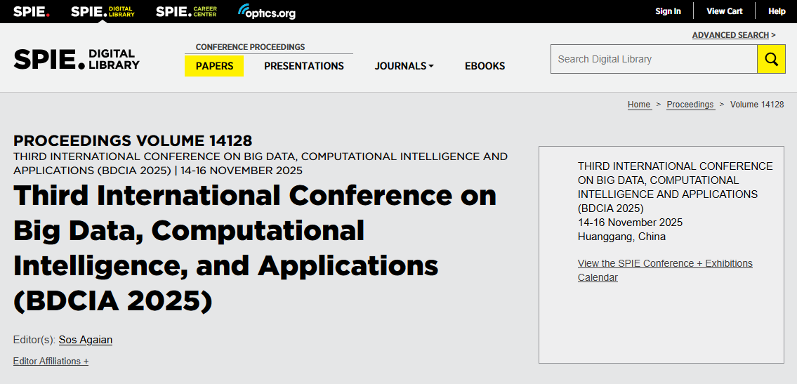 BDCIA2025 has got publishing support by SPIE! →